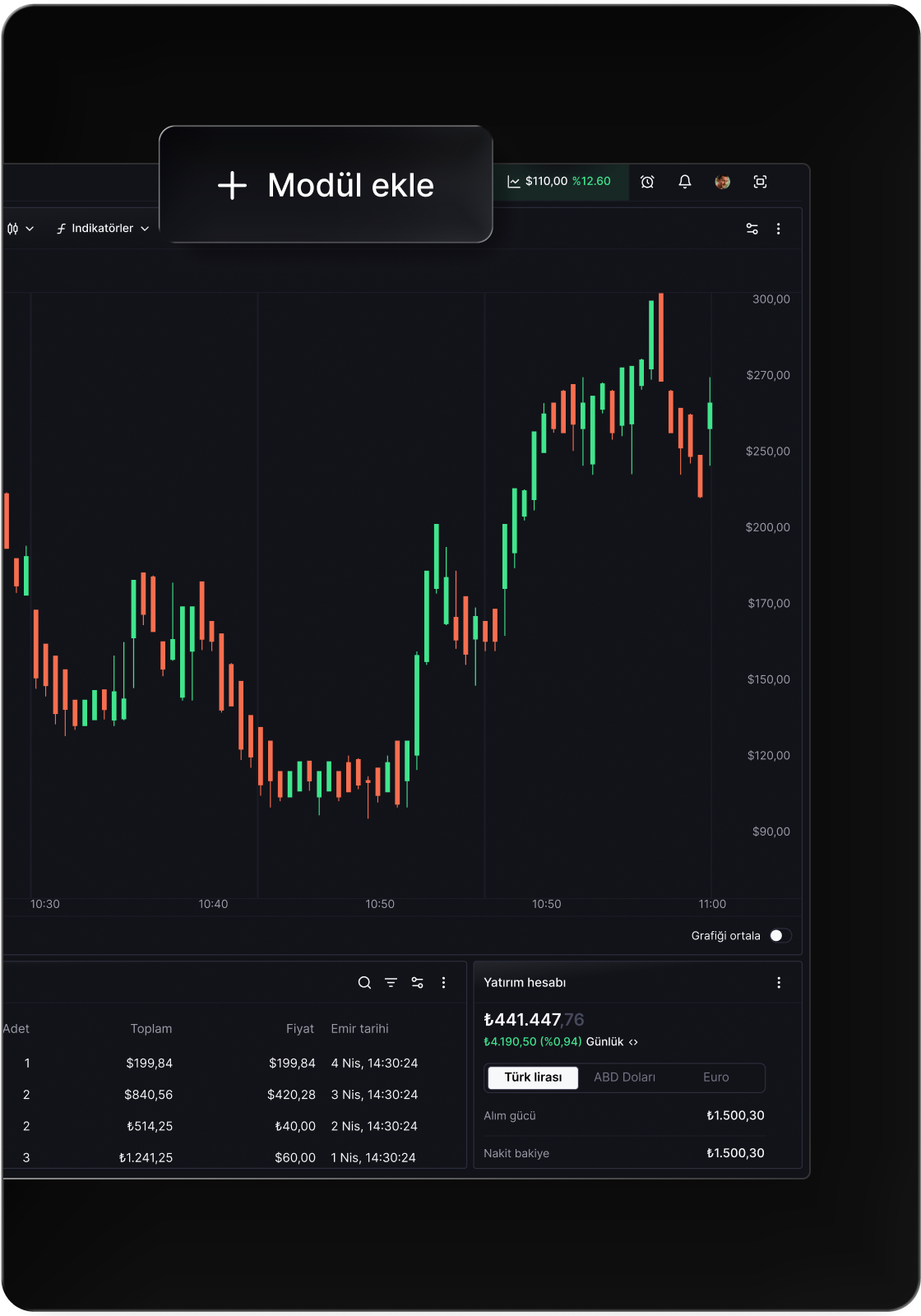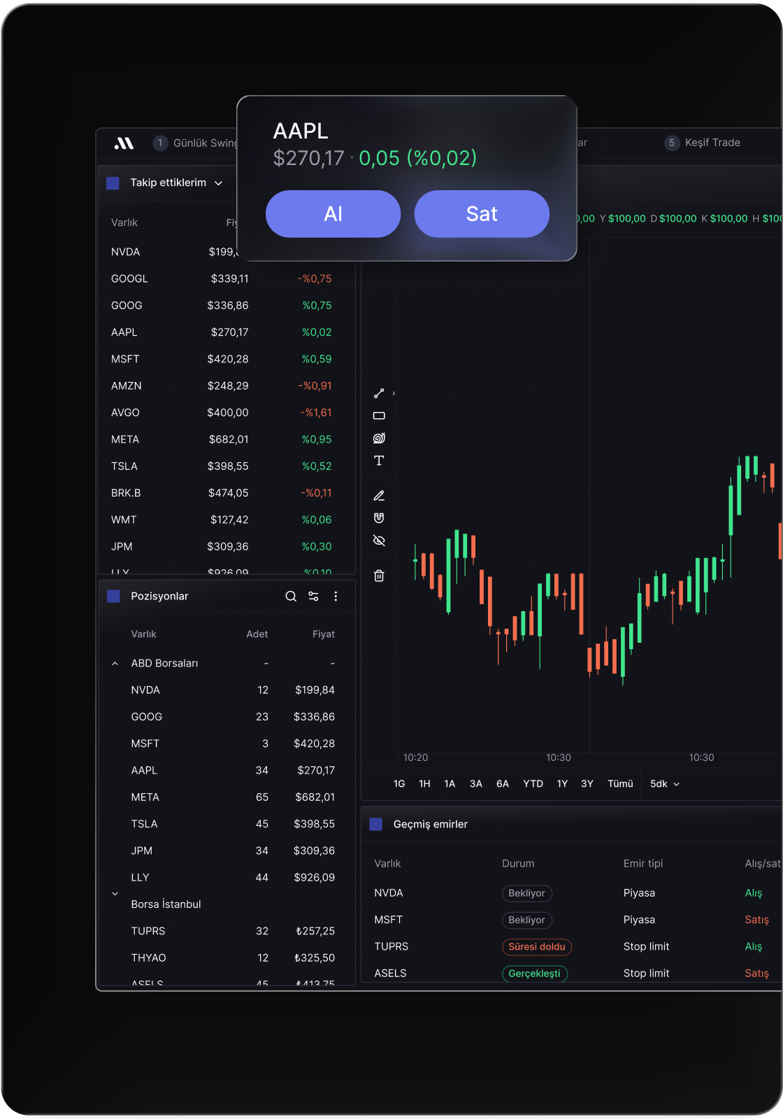 Gelişmiş analiz araçlarını kullan, emrini ver, pozisyonunu takip et.