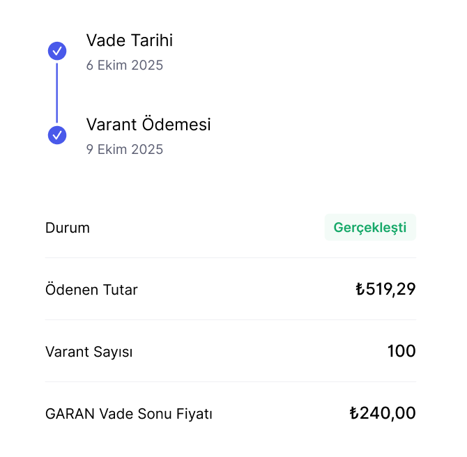 Vade sonunda kârda olan varantların ödeme tarihini ve tutarını tek ekranda rahatça gör.